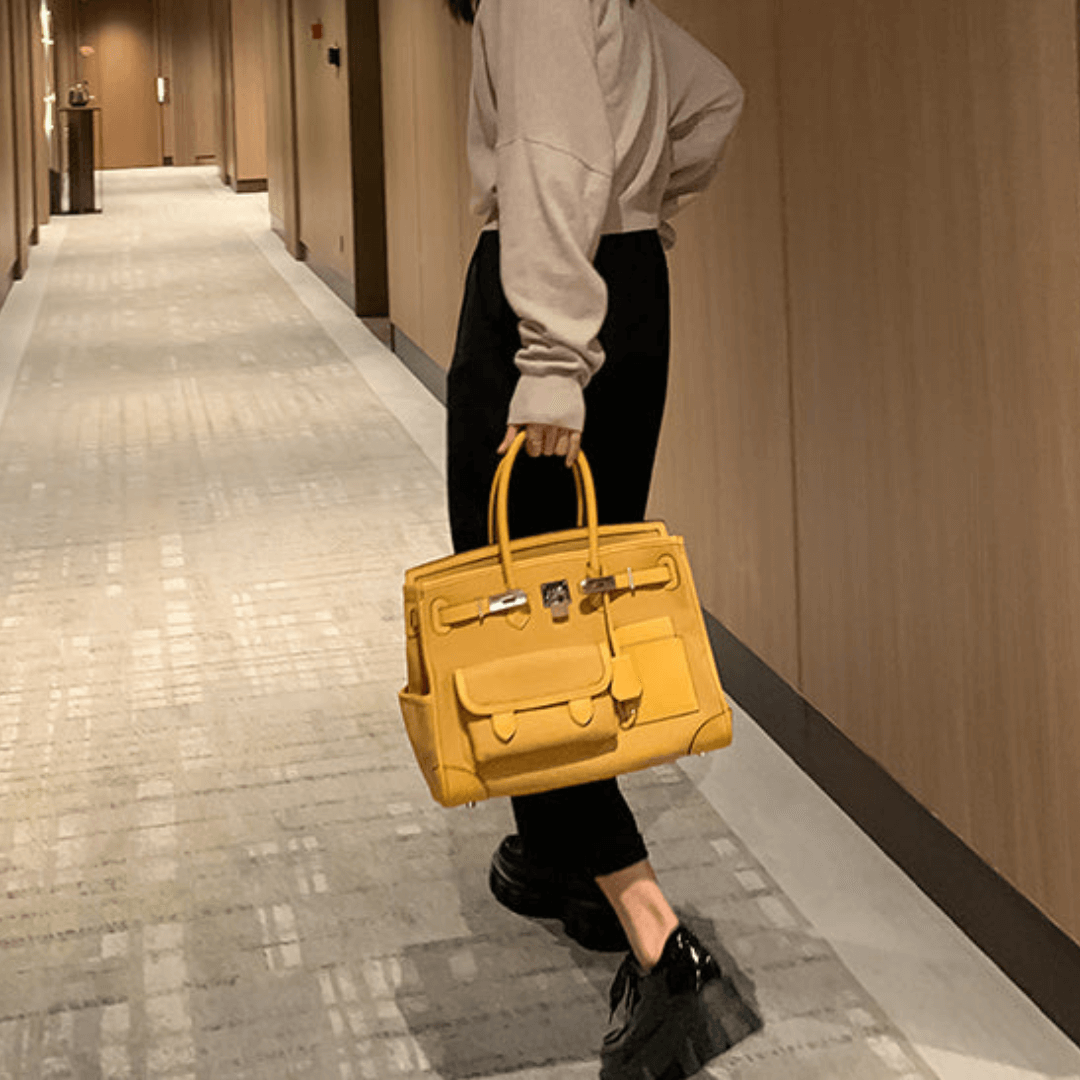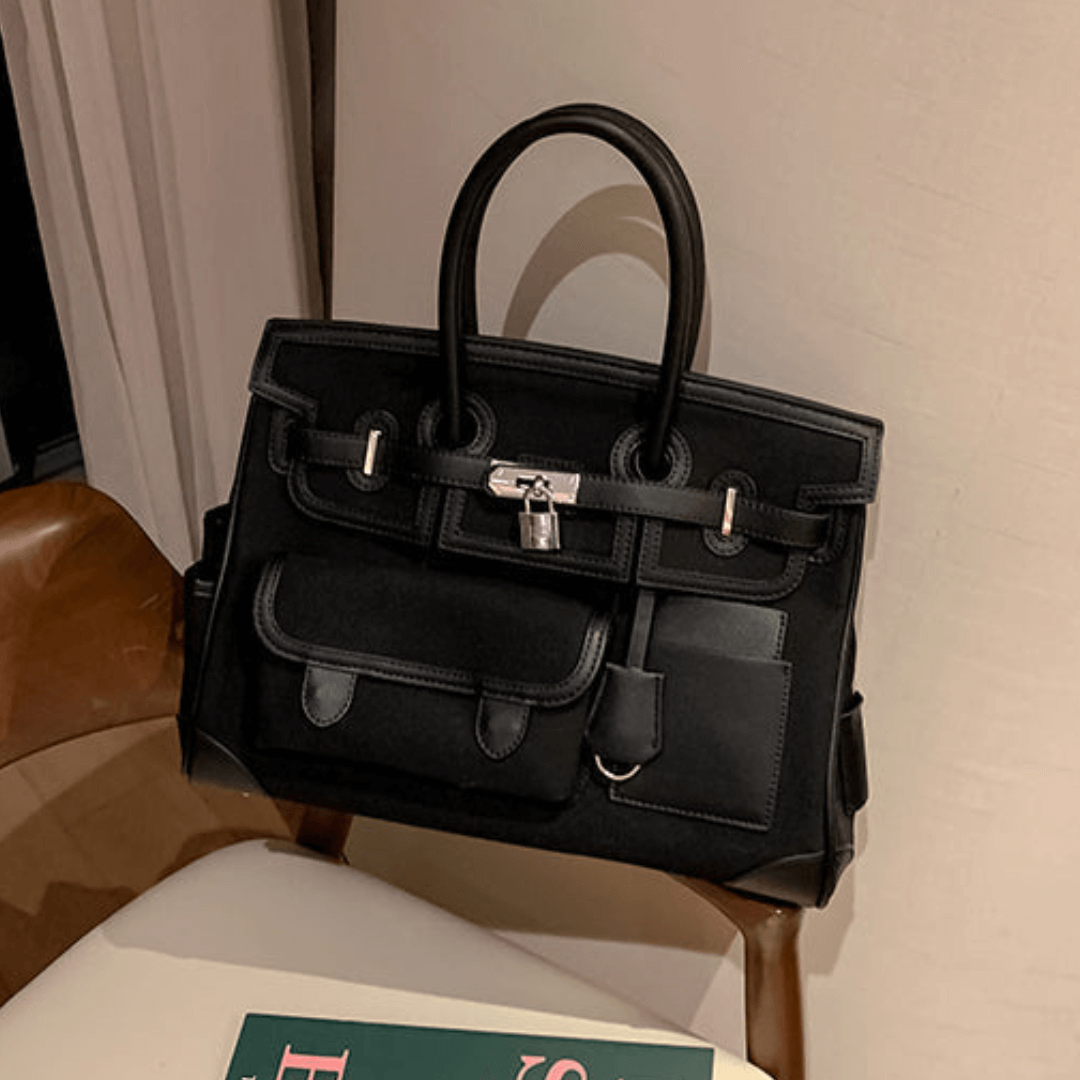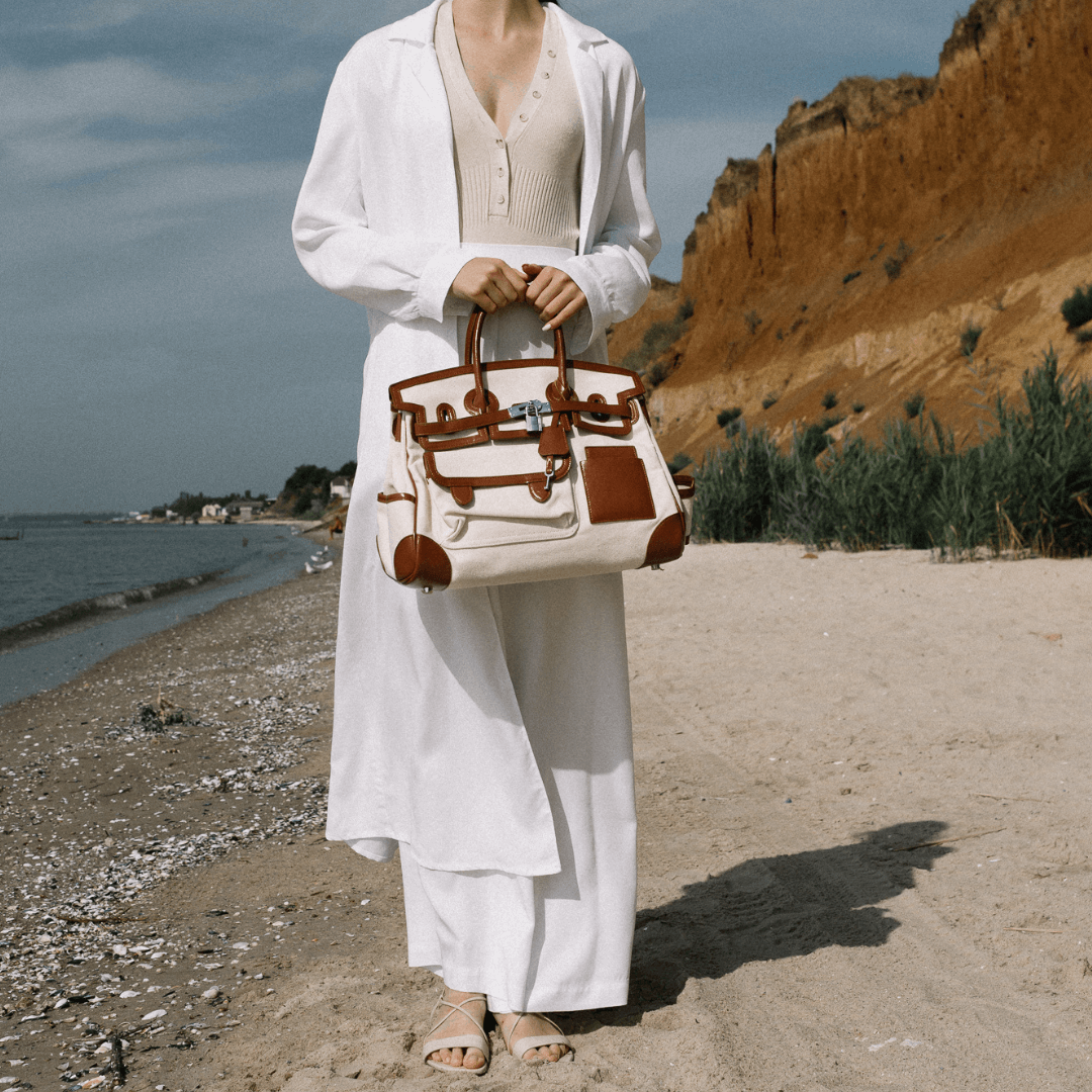 A suede tote crafted with the globe-trotter in mind. Luxurious leather detailing frames the sturdy yet chic silhouette, complete with plenty of external pockets and pouches, including a specially designed drink holder. Carry it along for an unparalleled journey of discovery.